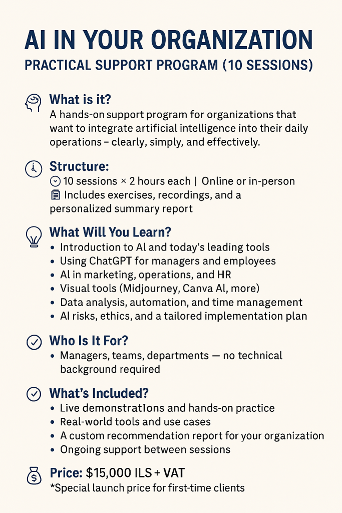 10 מפגשים שיפתחו לכם את הדלת לעולם ה-AI, בלי צורך בידע טכנולוגי מוקדם.